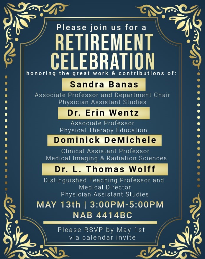 [CHPFacultyStaff] Retirement Celebration for Dominick DeMichele, Sandra Banas, Dr. L. Thomas Wolff & Dr. Erin Wentz