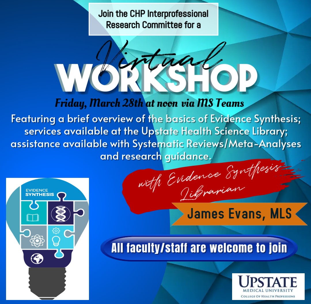 [CHPFacultyStaff] Workshop w/ Evidence Synthesis Librarian-James Evans, MLS