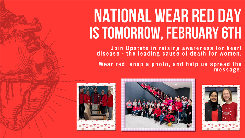 If you are wearing red for heart disease today, please gather at the Silverman entrance from the NAB at 1:05pm for a quick group photo.