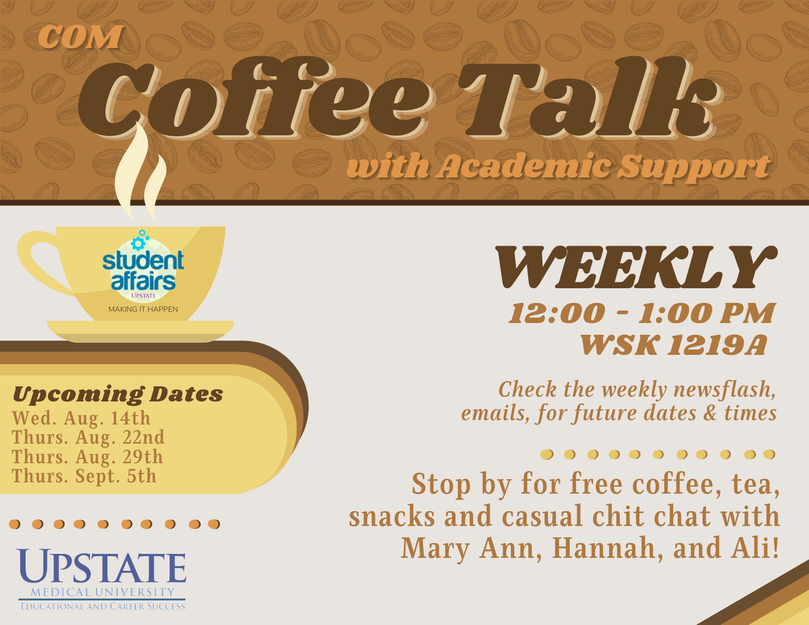 MED2028 Coffee Talk w/ Academic Support THIS WEDNESDAY 12-1pm