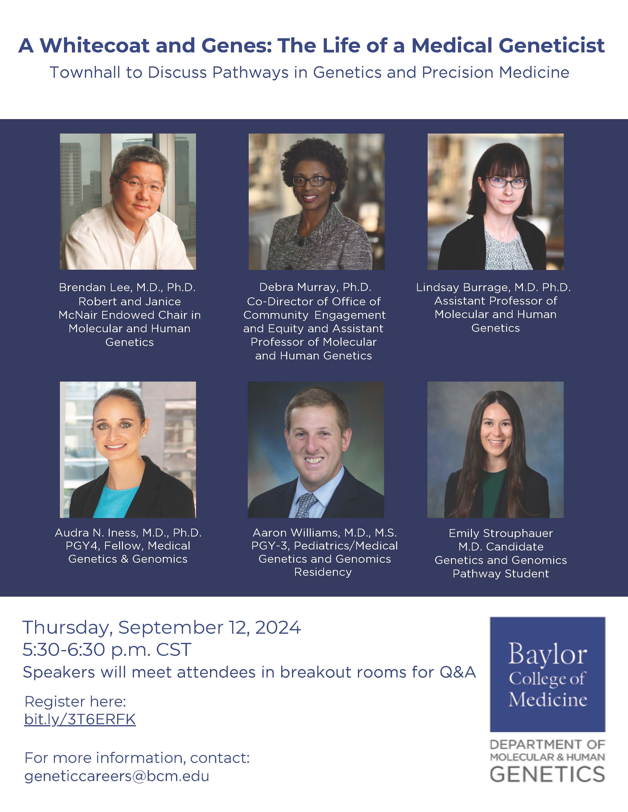 MED2028 Medical career pathways in genetics and precision medicine - Medical Genetics Townhall September 12th @ 5:30 PM CST