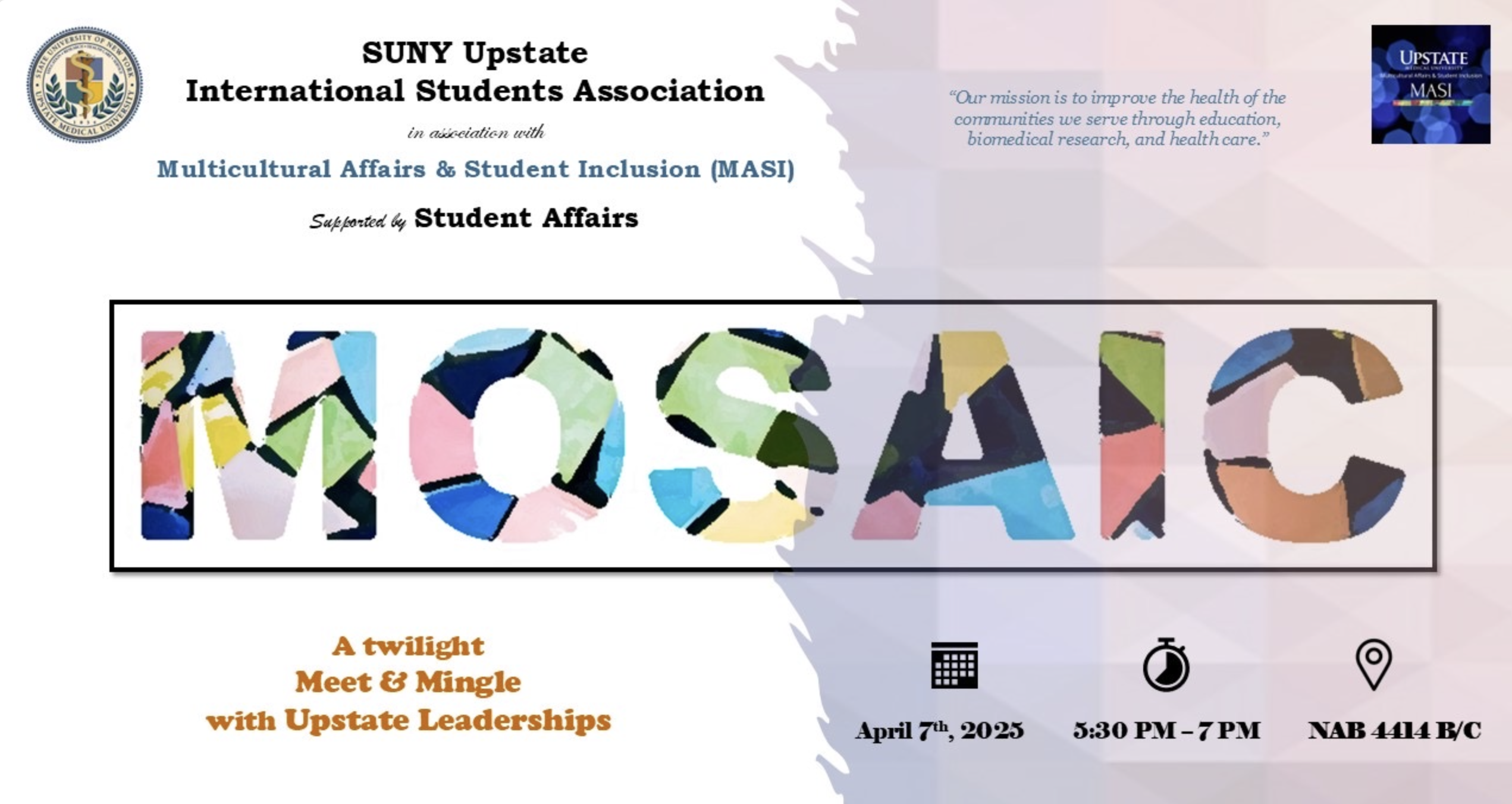 To celebrate the beginning of blooming season, we would like to invite you to join us for 'MOSAIC' ~ a special twilight meet & mingle with our Upstate leaderships - President, Deans, and everyone. Chat, network, enjoy the snacks, and be yourself in this safe space. Let's celebrate ourselves, let's celebrate the togetherness.