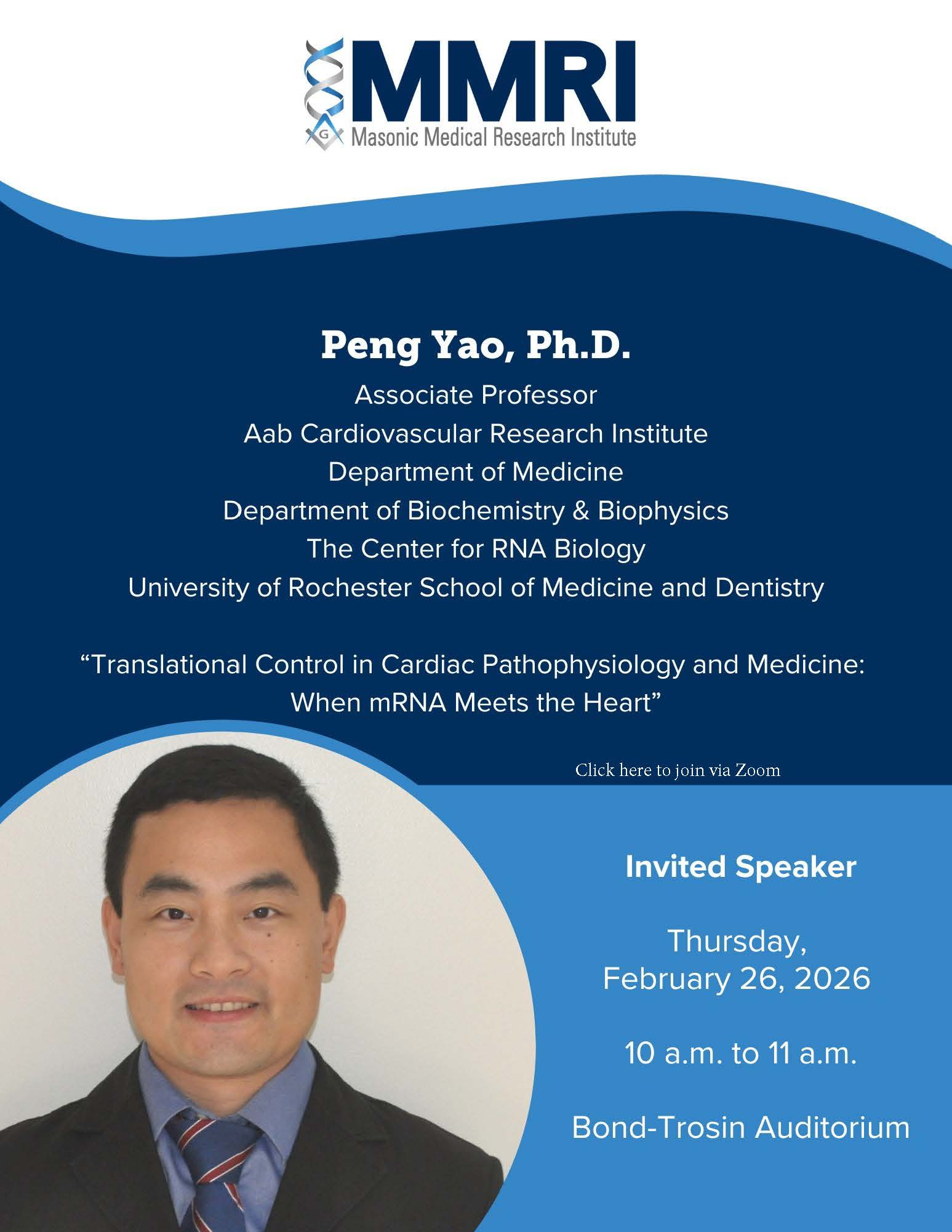 Subject: [EXTERNAL] Masonic Medical Research Institute Invited Speaker - Peng Yao, Ph.D., University of Rochester Medical Center
