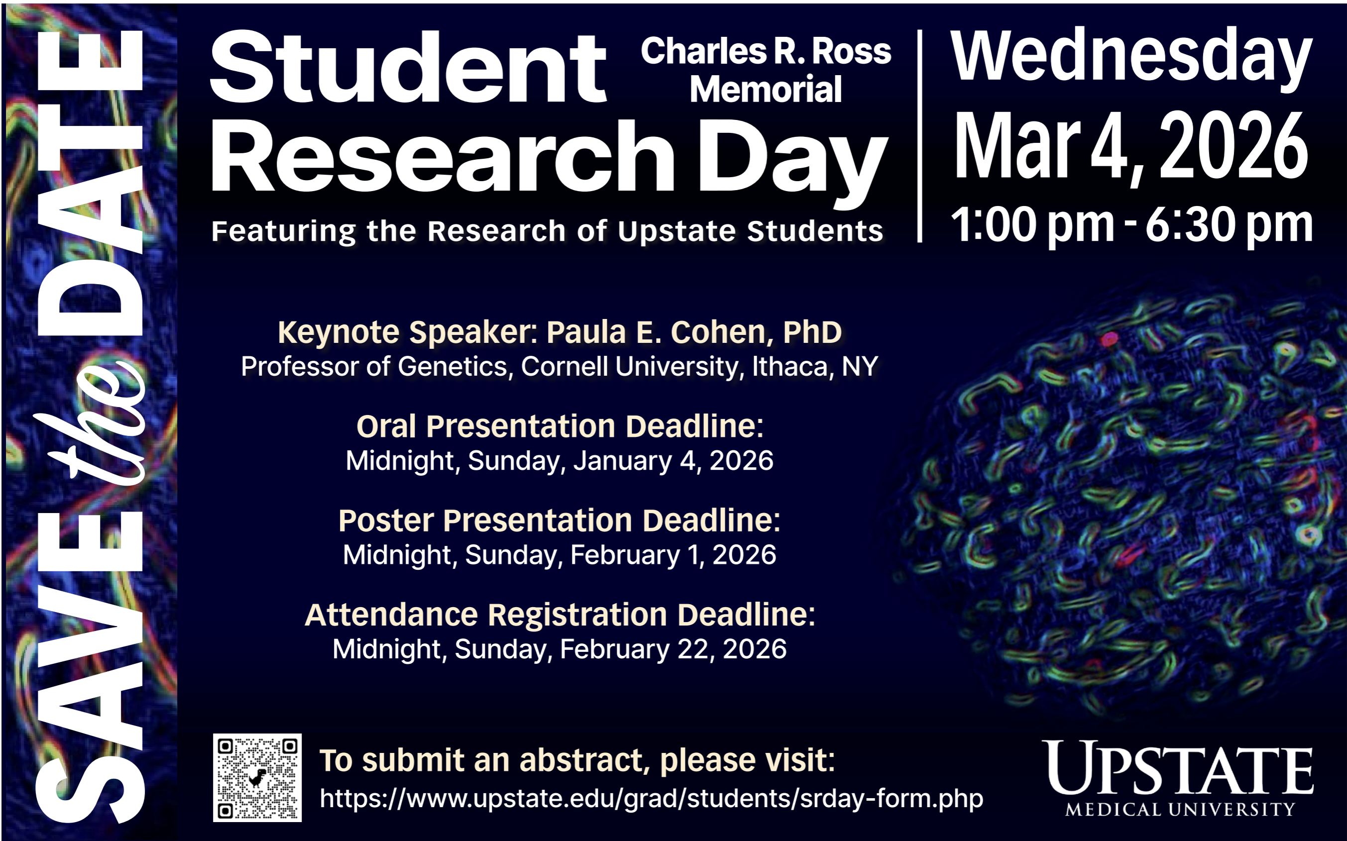 Don't wait until the last minute, make sure you review the poster and abstract submission information, so you know what is needed for poster printing: https://www.upstate.edu/grad/students/srd/abstract-poster-guidelines.php