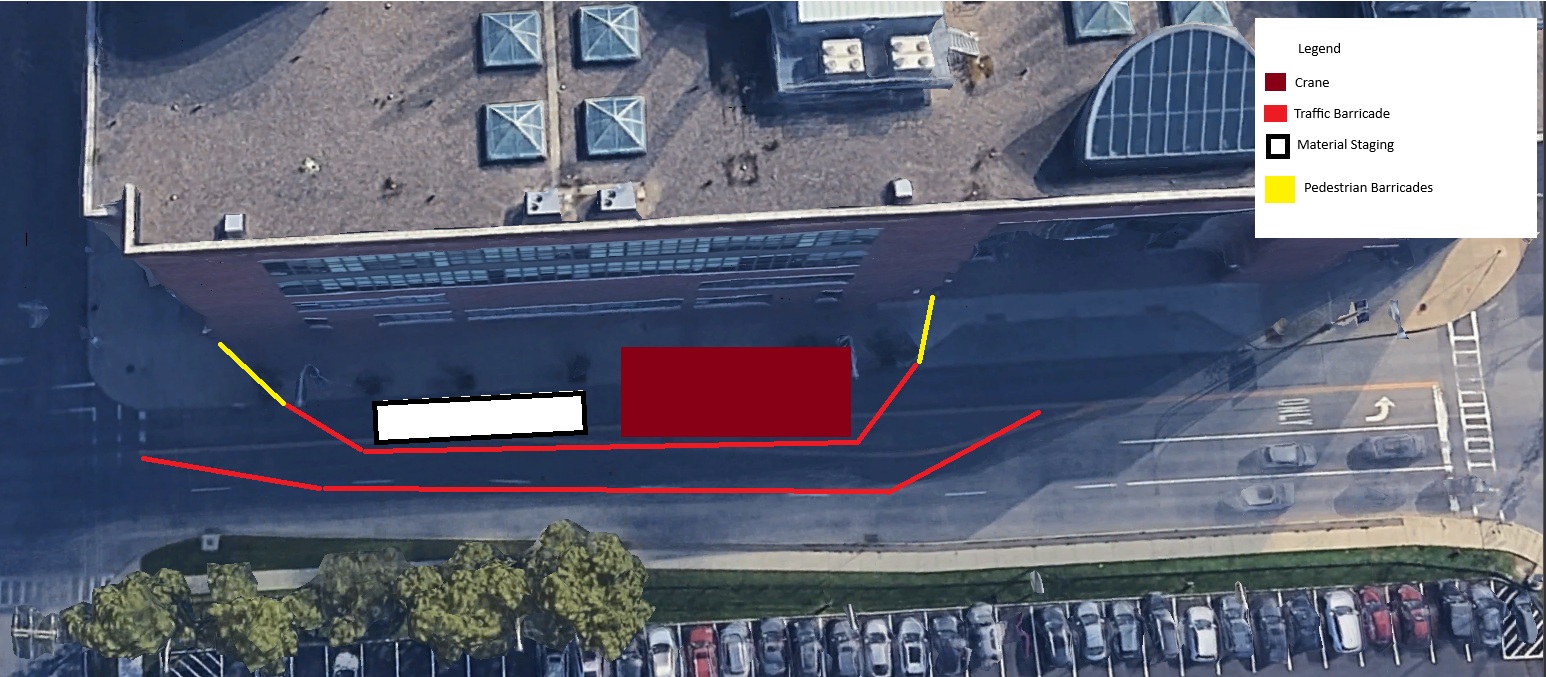 Physical Plant and UPD will be coordinating efforts to maintain a lane of traffic open in each direction on Irving Avenue along the West side of the IHP building during the crane operations.