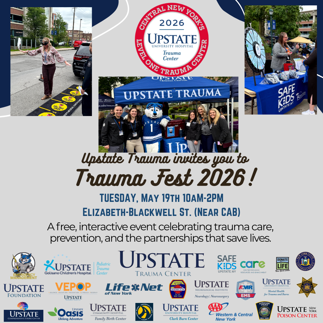 In recognition of Trauma Awareness Month, Upstate Trauma Services invites you to TraumaFest 2026—our annual event celebrating the teams, first responders, and community partners behind exceptional trauma care.