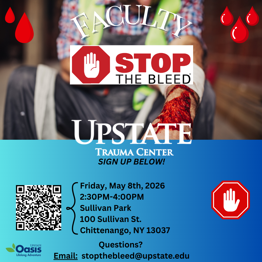 1 instructor for the Public Stop the Bleed Course at Oasis in East Syracuse on Wednesday, April 29th from 10:00AM-11:00AM. Use this link to register: April 29th Registration Link<https://urldefense.com/v3/__https://cmetracker.net/UTC/Publisher?page=pubOpen**AEventID*1052*qr__;Iy8vLw!!GobTDDpD7A!I3vF5Vlk7z3xM8Wcxn0T2kxA6_cNaU7QErthOfRGk6Dxs-Azw2Xqw0PdOeEb0uMQ5Dx3YFrdyOG2U4I_rQXcScaqZQCimByQQAEX$ >