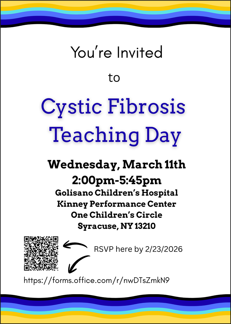 Sharing on behave of our Outpatient Cystic Fibrosis team. Please share with staff. This teaching day is designed for all Upstate staff.
